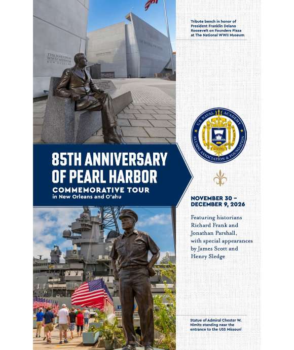 - Travel with featured historians Jonathan Parshall (New Orleans), Richard Frank (Honolulu), James Scott (Closing Reception in Honolulu), and an Historian from the Jenny Craig Institute for the Study of War and Democracy