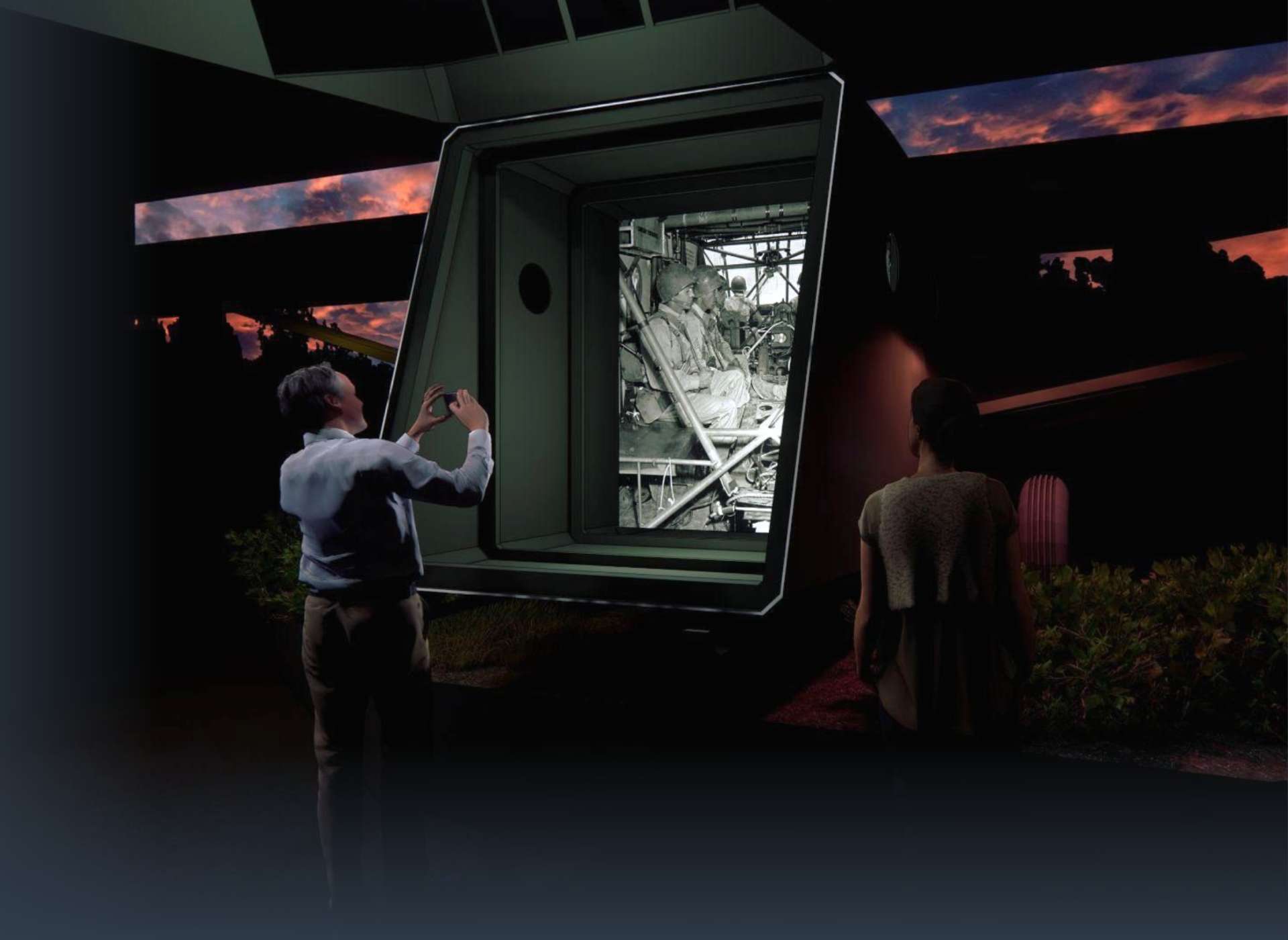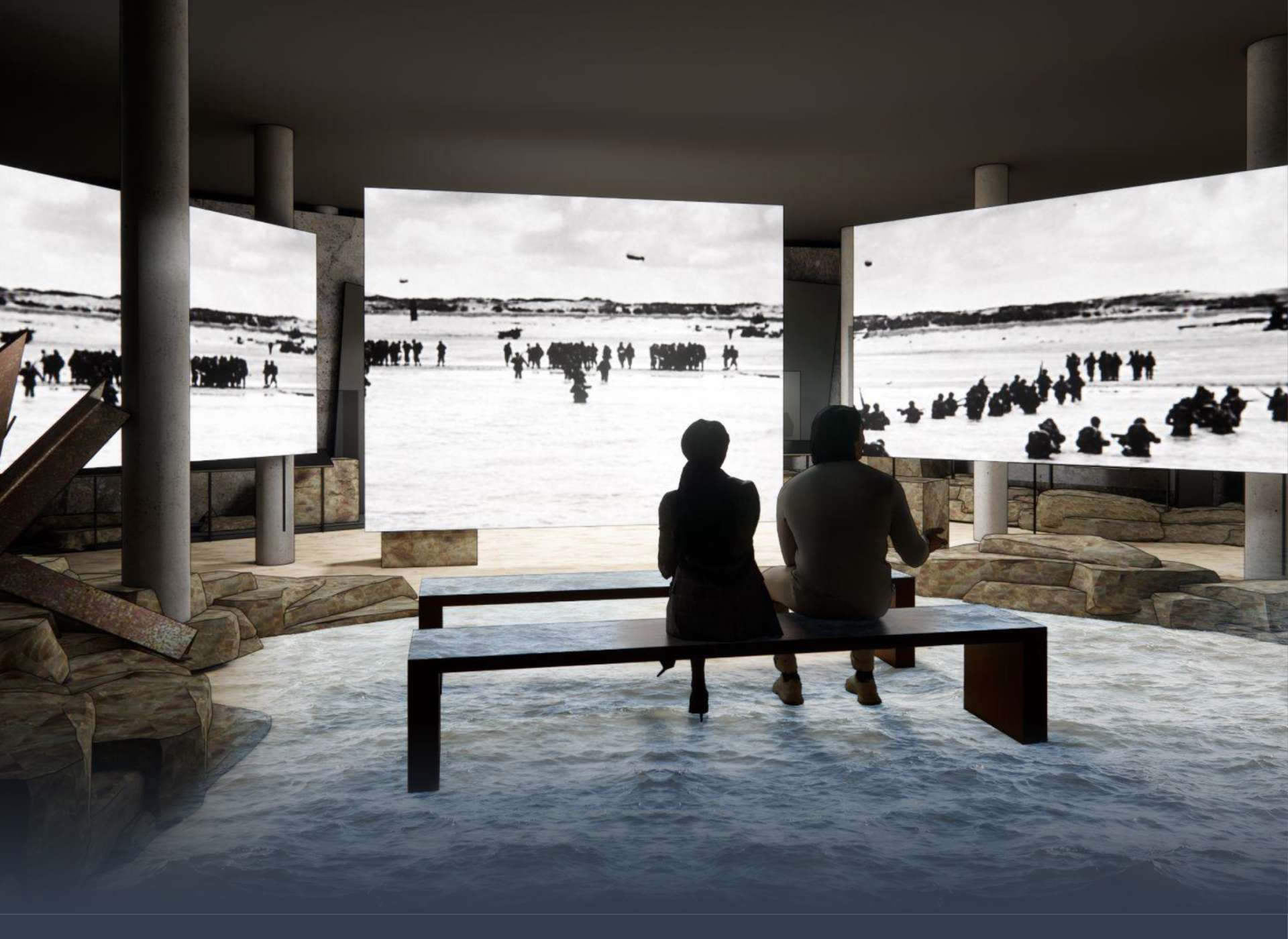 Liberation Pavilion Three building levels will explore the closing months of the war and immediate postwar years, concluding with an explanation of links to our lives today.